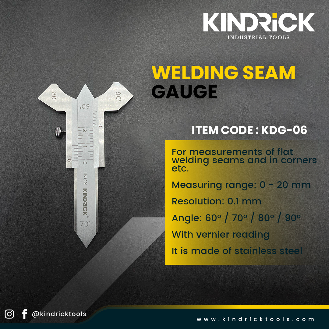 • 2 Measuring range: 0 – 20 mm Resolution: 0.1 mm Angle: 60° / 70° / 80° / 90° with vernier reading It is made of stainless steel